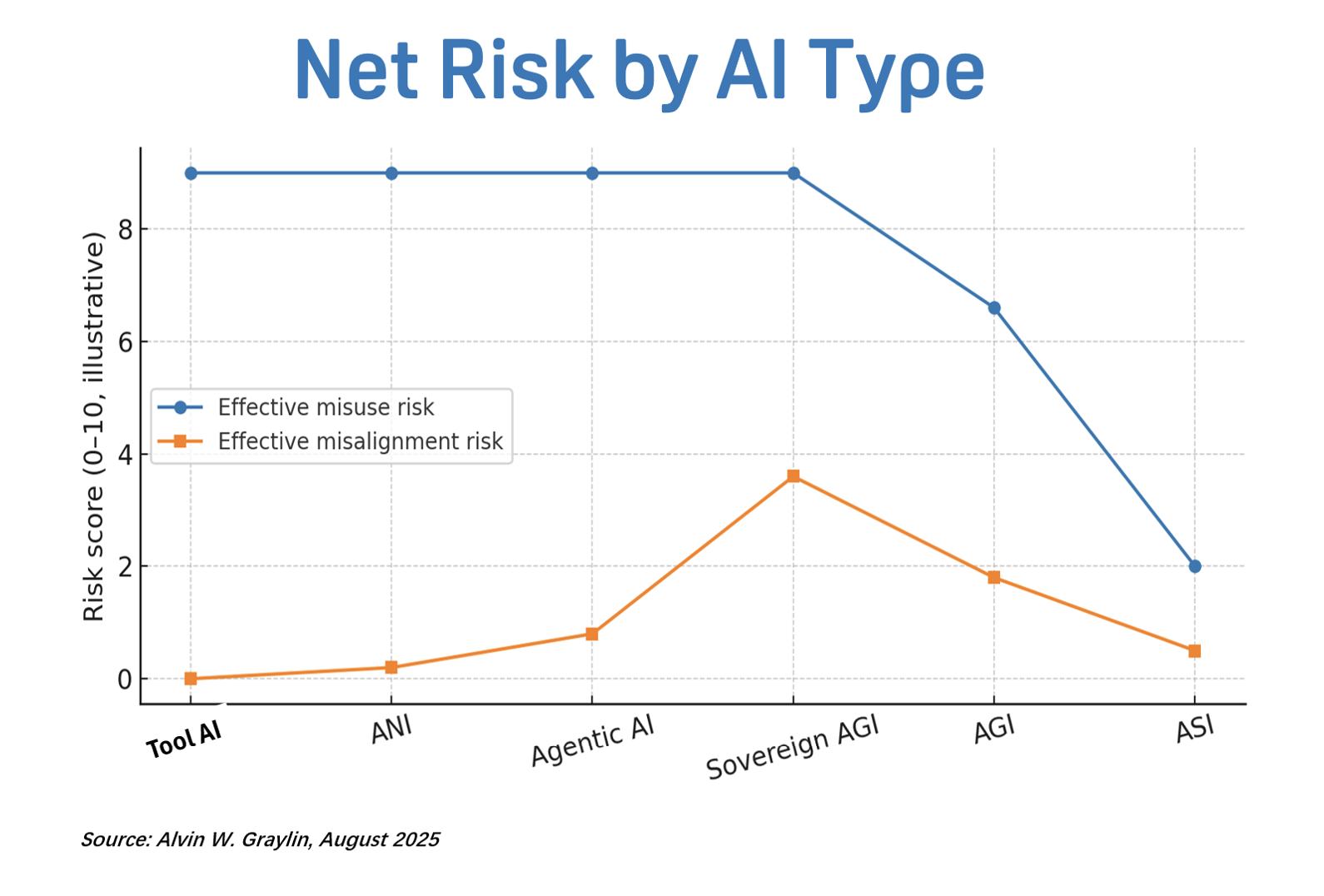 The net risk of each group can be obtained by multiplying the likelihood with their severity (see additional data in Appendix B). Most AI safety efforts to date are focused on alignment-related issues, but when evaluating the risks objectively, clearly human misuse poses a far greater net risk to the world. And more interestingly, sovereign AI—AI dominated by one country, which is the path the US and many Western nations are prioritizing—may be the most high-risk option: It has all the downside of high misuse risk and higher misalignment risks because it is trained on incomplete datasets and biased goals. If we can agree that reducing net risk is a common goal, then we can build smarter and safer models by consolidating our constrained development and training resources with a globally integrated dataset and value systems that represent all cultures.